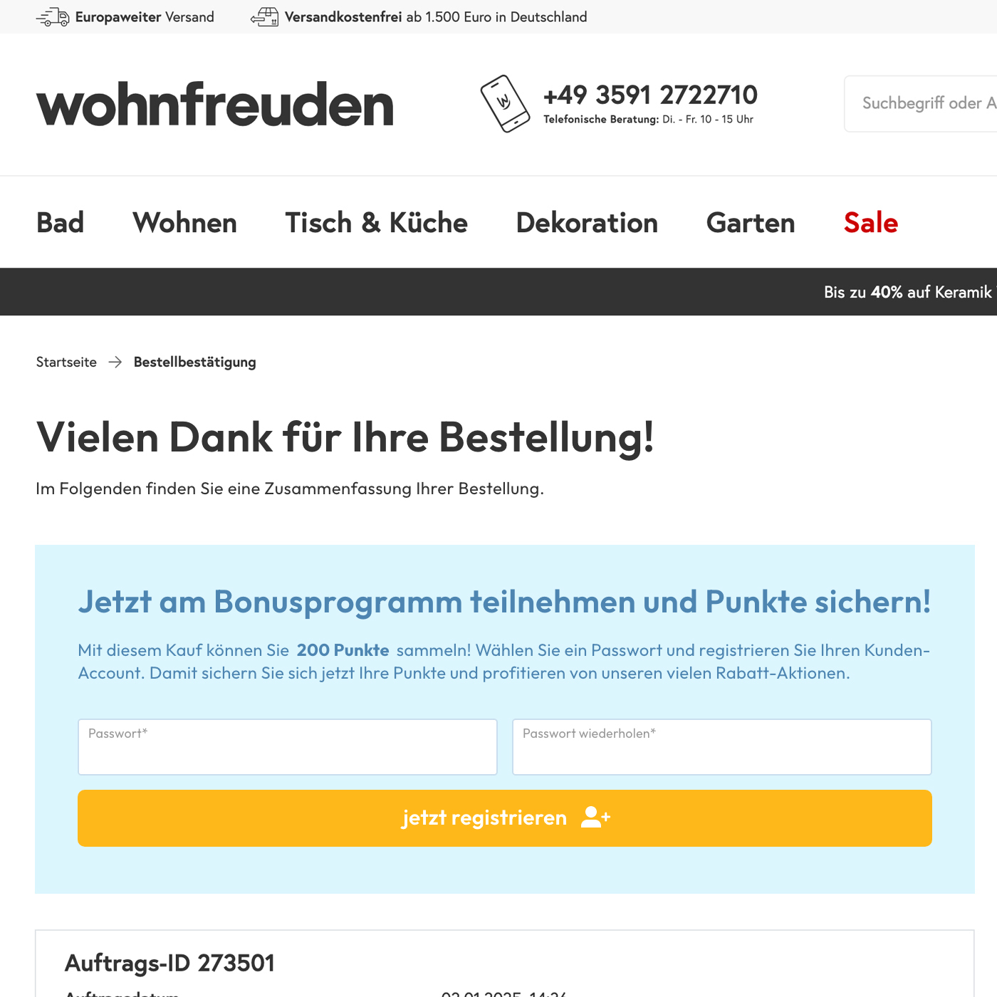 - Punkteansicht auf Bestellbestätigungsseite