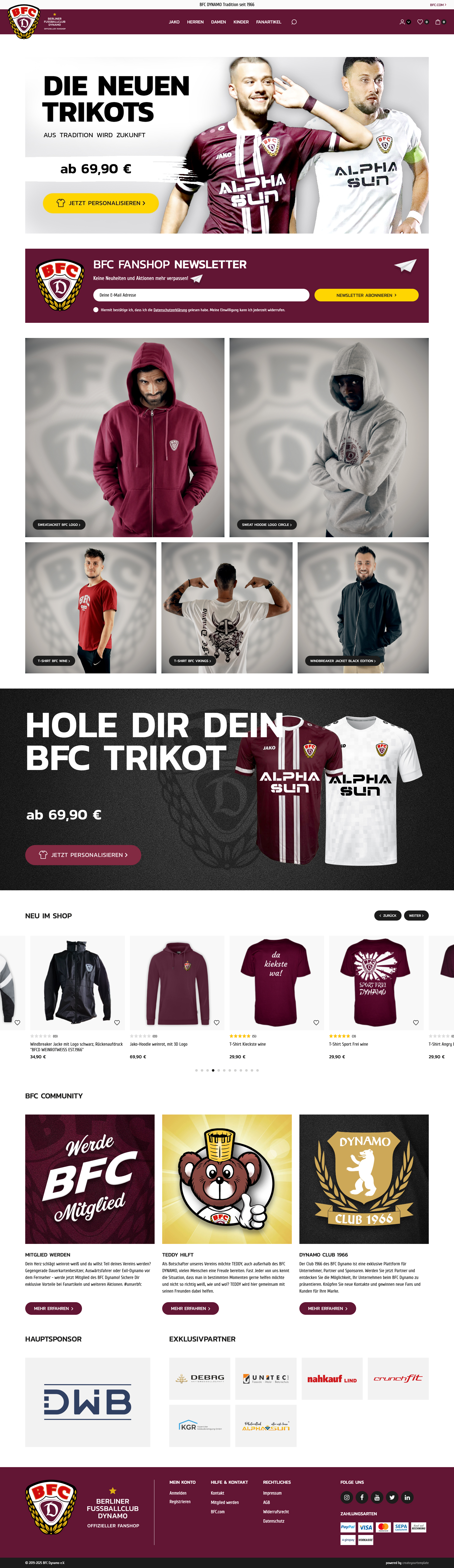 Der BFC Dynamo steht für Tradition, Leidenschaft und echte Fan-Kultur. Ziel des Relaunchs war es, diese Werte digital erlebbar zu machen und den Fans eine zentrale Anlaufstelle zu bieten, die weit über den klassischen Merch hinausgeht. Der neue Fanshop sollte die Identifikation mit dem Verein stärken, das Vereinsleben online abbilden und durch den zukünftige integrierten Ticketshop mit QR-Code-Verwaltung das Stadionerlebnis noch komfortabler machen.