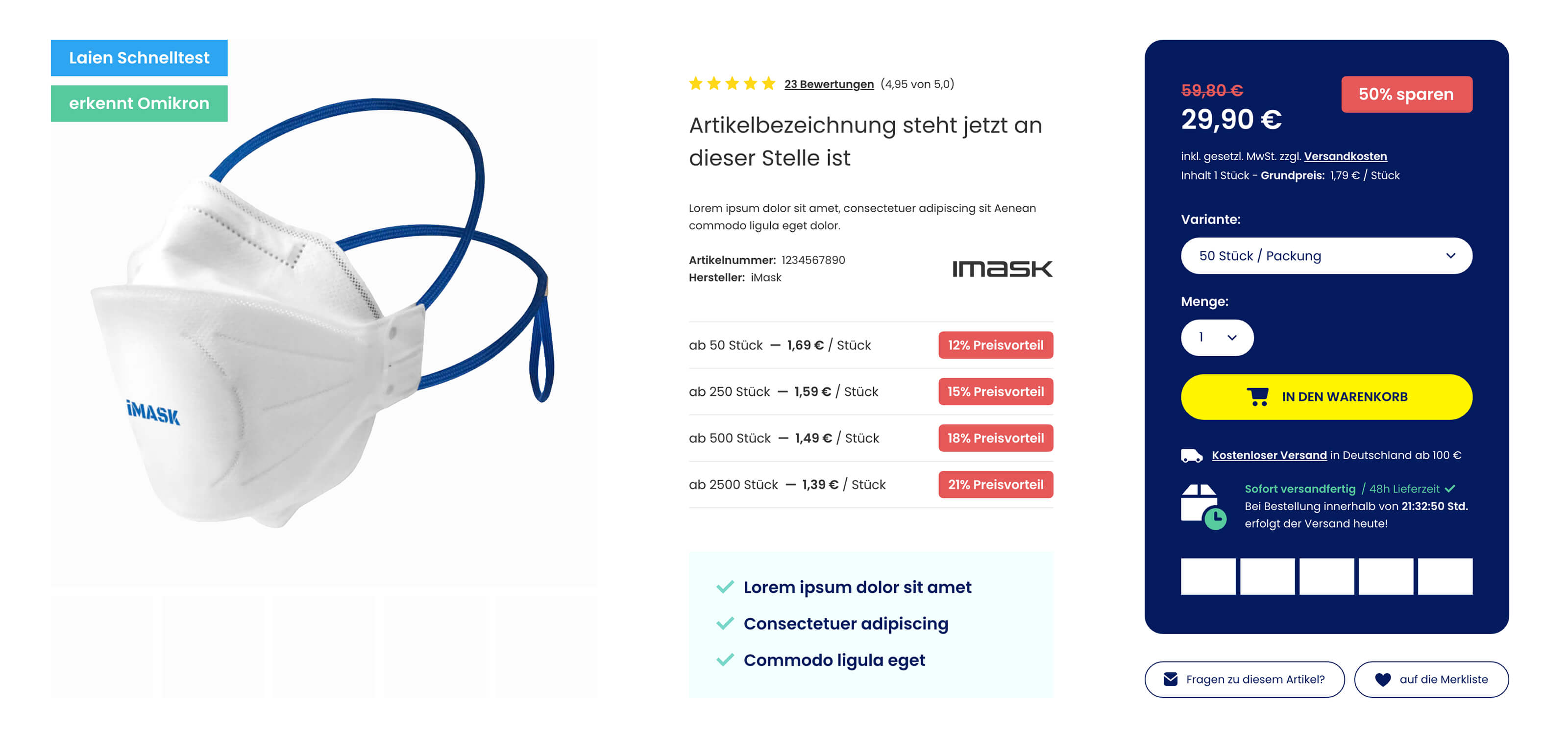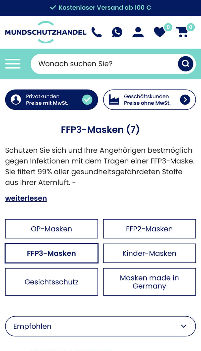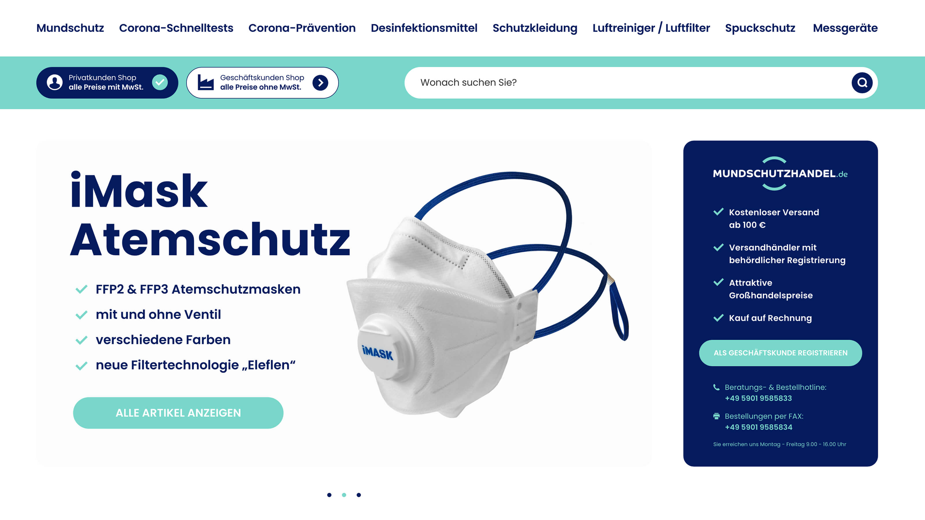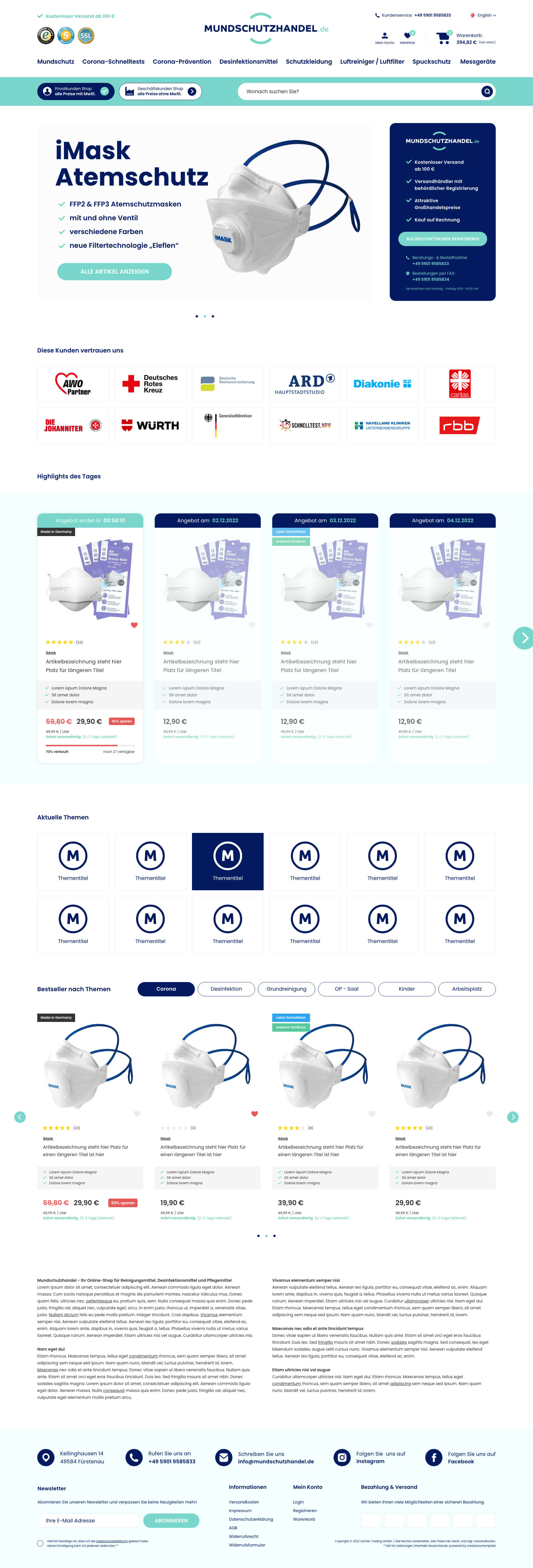 Mit Beginn der Corona-Pandemie stand Mundschutzhandel vor der Herausforderung, Kund:innen schnell, zuverlässig und sicher mit Masken und Schutzausrüstung zu versorgen. Ziel war es, einen Webshop zu schaffen, der nicht nur technisch einwandfrei funktioniert, sondern auch durch sein Design Vertrauen schafft und in einer Zeit großer Unsicherheit als seriöse und professionelle Anlaufstelle wahrgenommen wird.