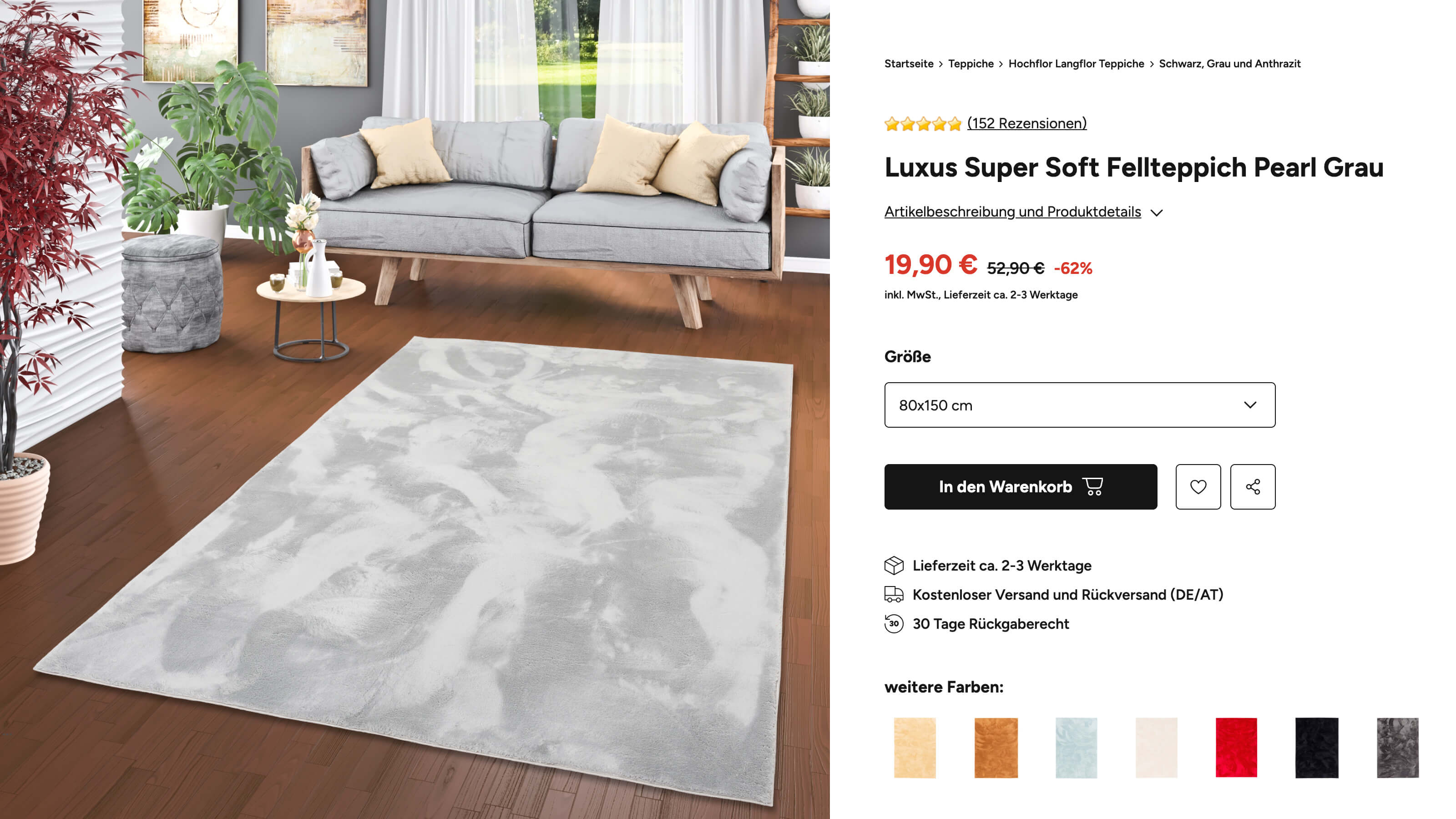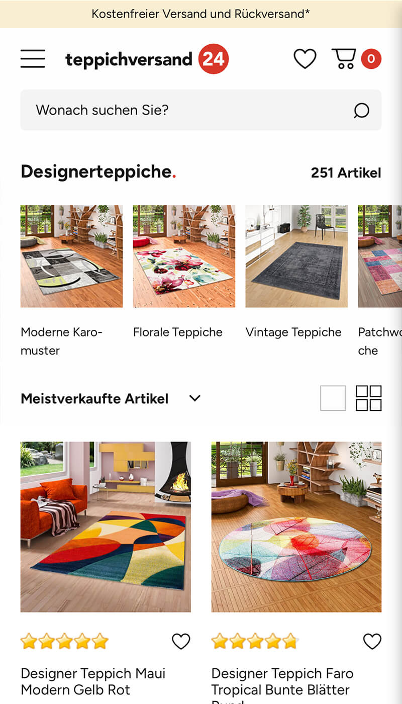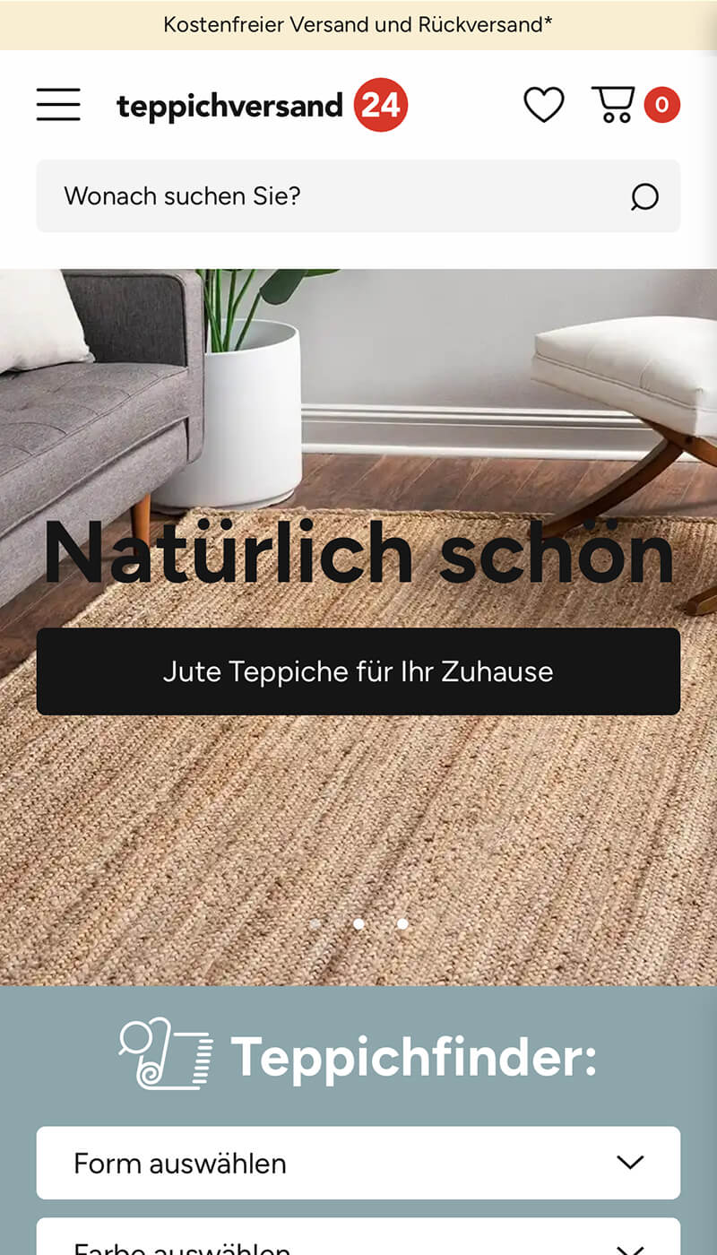 Mit seinem transparenten Design, dem omnipräsenten Teppichfinder und einer angenehmen Nutzerführung bleibt Teppichversand24 die erste Wahl für alle, die ihrem Zuhause mit hochwertigen Teppichen eine besondere Note verleihen möchten. Die Marke steht für Verlässlichkeit, Auswahl und unkomplizierten Service – national wie international.