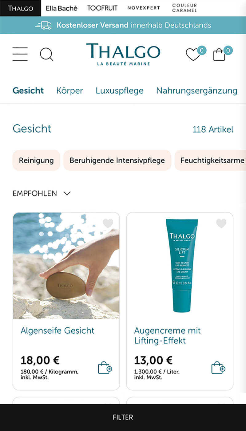 Der Relaunch von Thalgo hebt die Marke digital auf ein neues Level. Mit klarer Struktur, starker Nutzerorientierung und moderner Technik bietet der Webshop ein hochwertiges Einkaufserlebnis, das die exklusive Positionierung von THALGO unterstreicht und den Weg für weiteres Wachstum ebnet.